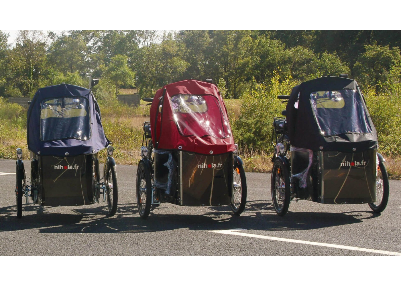 Cette capote de pluie est spécialement adaptée aux triporteurs NIHOLA de la gamme CARGO (versions Open ou Family)